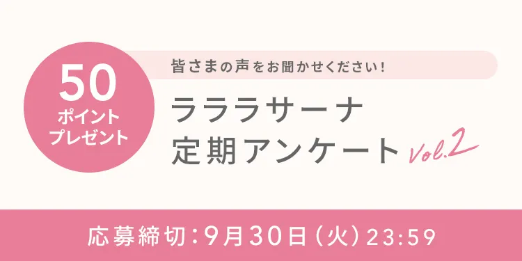 前回と同じ内容での実施となりますが、3~9月の変化ではなく「ラララサーナに登録してから感じていること」をもとにご回答いただけるとうれしいです🥰