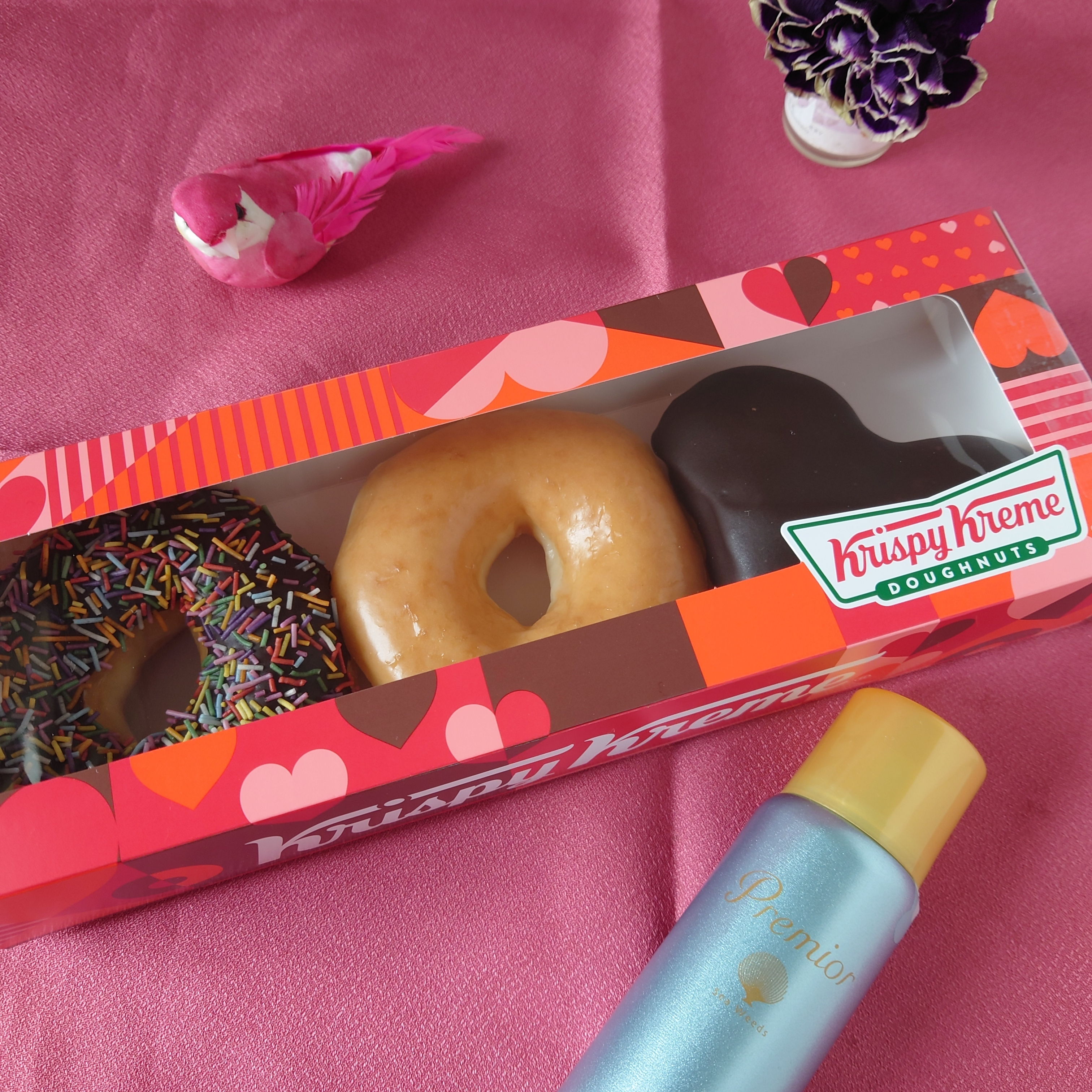 クリスピードーナツ、ふわふわで美味しいですよね😋バレンタイン限定がかわいいです🫶