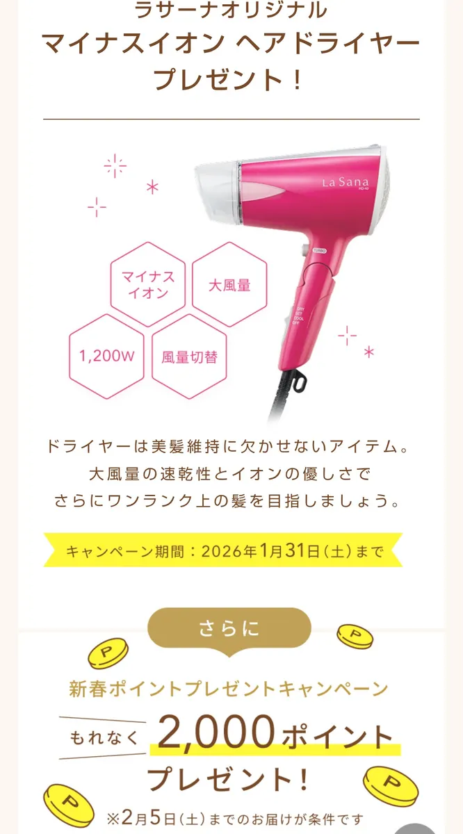 さらにドライヤーもポイントもついてきて、ホワイトティーも選べる✨