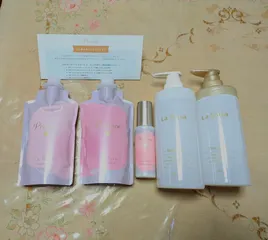 🌹ラ·ローズサンプル感想投稿に応募していましたが、まさか5点セットも🎯当たるなんて夢のようで嬉しさでいっぱいになりました〜🤩有りがとうございます❤️届いた夜に早速使いました🌹🌹薔薇の香りはホントに素敵✨️髪も手触り最高で感激です〜🥰愛用&リピ間違いなしです〜🩷
